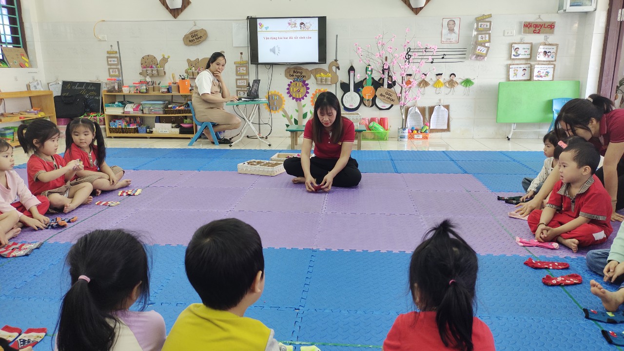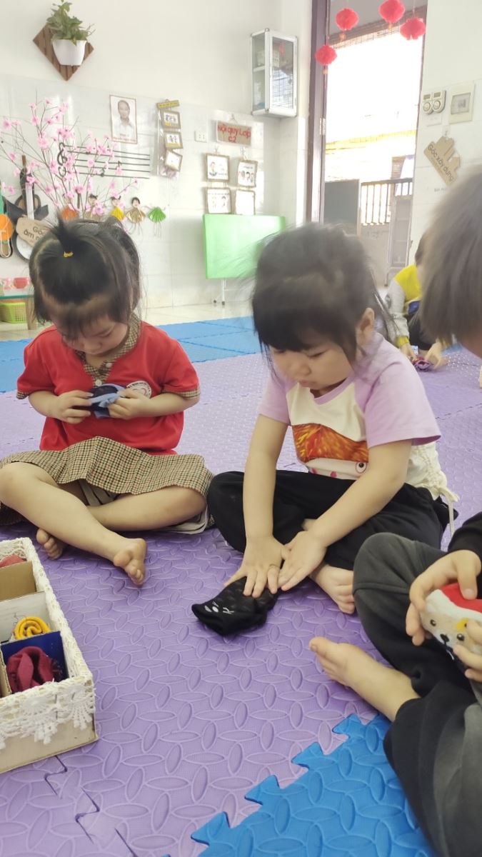 - HĐGDKNS: Kỹ năng cuộn và cất tất do cô giáo Trần Thị Hơn- Lớp 3 tuổi C2 triển khai.