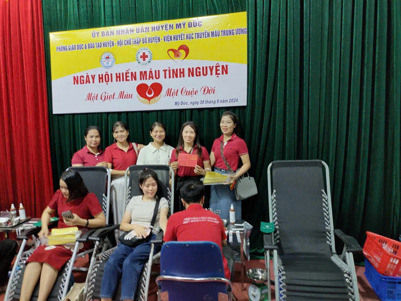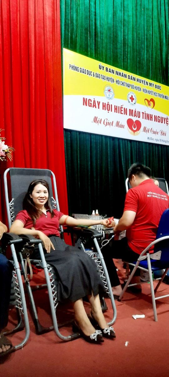 30/09/2024 A- A A+ | HIẾN MÁU TÌNH NGUYỆN Xem Chia s? Hiến máu tình nguyện là một nghĩa cử cao đẹp, thể hiện trách nhiệm của cá nhân đối với cộng đồng, lòng thương yêu đồng loại “Một người vì mọi người”. Những giọt máu chúng ta cho đi đồng nghĩa với chúng ta đã trao niềm hi vọng được sống và tiếp thêm sức mạnh cho nhiều bệnh nhân đang nằm chờ giữa sự sống và cái chết. Để góp phần cứu sống người bệnh mỗi chúng ta cần nêu cao tinh thần tình nguyện tham gia Hiến máu cứu người khi ta có thể. Nhận thức rõ tầm quan trọng của Hiến máu Nhân đạo, từ các năm trước đến nay CB,GV,NV nhà trường đã tuyên truyền nhằm thu hút cán bộ, giáo viên, nhân viên tình nguyện tham gia hiến máu. Ngày hội này đã khơi dậy lối sống chan hòa, yêu thương, đoàn kết đùm bọc với lý tưởng sống cao đẹp cùng chung tay sẻ chia giọt máu hồng yêu thương. Những năm qua, phong trào hiến máu tình nguyện của trường Mầm non Hợp Tiến B luôn nhận được sự ủng hộ của các cán bộ, giáo viên, nhân viên Thực hiện CV Số 484/PGD&ĐT ngày 16 /09/2024 về việc tổ chức hiến máu tình nguyện ngành GD&ĐT Sáng nay ngày 30/09/2024 Trường MN Hợp Tiến B Tham ra Ngày hội hiến máu tình nguyện Tại UBND xã Xuy Xá. Trên tinh thần tự nguyện Các đc GVNV trong trường có 5 đồng chí xung phong tham gia hiến máu tình nguyện cho đi là còn mãi. Sau đây là một số hình ảnh. Tập tin đính kèm Tải về