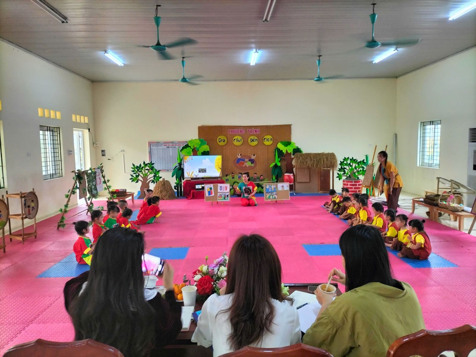 05/04/2025 A- A A+ | HỘI THI GIÁO VIÊN, NHÂN VIÊN NUÔI DƯỠNG GIỎI CẤP HUYỆN NĂM 2024- 2025 Xem Chia s? Thực hiện kế hoạch số…/GDĐT-GDMN ngày/ 01/2025 về việc Tổ chức Hội thi giáo viên dạy giỏi, nhân viên nuôi dưỡng giỏi, Bếp ăn an toàn cấp học mầm non năm học 2024-2025. Chiều ngày 26 tháng 3 năm 2025 trường mầm non Hợp Tiến B tham gia Hội thi “Giáo viên dạy giỏi, nhân viên nuôi dưỡng giỏi cấp huyện năm học 2024-2025”. Hội thi nhằm động viên, tạo cơ hội cho giáo viên rèn luyện, tự học và sáng tạo, tạo điều kiện để giáo viên thể hiện kỹ năng nghề nghiệp, học tập, trao đổi kinh nghiệm về giảng dạy, tổ chức lớp học; khai thác sử dụng sáng tạo, hiệu quả phương tiện, đồ dùng dạy học. Hội thi là một trong những căn cứ để đánh giá thực trạng đội ngũ, từ đó xây dựng kế hoạch đào tạo, bồi dưỡng nhằm nâng cao trình độ chuyên môn, nghiệp vụ cho giáo viên, đáp ứng yêu cầu đổi mới giáo dục. Trò chơi dân gian không chỉ đơn thuần là trò chơi cho trẻ mà nó còn chứa đựng văn hóa dân tộc Việt Nam độc đáo. Trò chơi dân gian không những nâng cánh cho tâm hồn trẻ, giúp trẻ phát triển khả năng tư duy, sáng tạo, khéo léo mà còn giúp trẻ hiểu tình bạn, tình yêu gia đình, quê hương, đất nước…Những trò chơi đơn giản, âm điệu vui tươi, sống động nhí nhảnh gần gũi với cuộc sống giúp trẻ thêm hào hứng học tập và sống hồn nhiên hơn. Mặt khác, các trò chơi dân gian thường diễn ra ngoài trời sẽ đưa trẻ gần với thiên nhiên hơn, trẻ có nhiều cơ hội tìm hiểu, quan sát về môi trường tự nhiên hơn Tại hội thi, các đồng chí giáo viên tổ chức 01 hoạt động Trò chơi dân gian: Nhà trẻ hoạt động “ Cắp cua bỏ giỏ”, Mẫu giáo 3 tuổi Hoạt động trò chơi “ Nhảy bao bố, mẫu giáo 4 tuổi hoạt động trò chơi “ Ném còn,mẫu giáo 5 Tuổi hoạt động trò chơi “ Cướp cờ”. Để tổ chức các trò chơi dân gian cho trẻ, các giáo viên đã tìm kiếm các dụng cụ đặc thù dễ làm, dễ kiếm không tốn kém chơi được mọi lúc mọi nơi. Các trò chơi dân gian cho trẻ mầm non như: Ô ăn quan, đánh chuyền, trốn tìm, bịt mắt bắt dê, kéo co,…Đồng thời, cho trẻ chơi kết hợp với các bài hát đồng dao như thả đỉa ba ba, nu na nu nống, dung dăng dung dẻ…được các cô giáo cho trẻ chơi phù hợp với hoạt động trong ngày. Trò chơi dân gian rất đa dạng phong phú nên giáo viên đã linh hoạt, sáng tạo kết hợp được rất nhiều trò chơi dân gian vào hoạt động hàng ngày cho trẻ ở trường như hoạt động góc, hoạt động ngoài trời, hoạt động chiều,…Nó vừa là sân chơi bổ ích vừa giúp trẻ hình thành kỹ năng sống rèn luyện thể chất tạo sự hòa đồng, thân thiện, đoàn kết. Hội thi giáo viên dạy giỏi, nhân viên nuôi dưỡng giỏi cấp huyện năm học 2024-2025 của trường mầm non Hợp Tiến B đã thành công tốt đẹp. Hội thi đã diễn ra một cách khách quan, nghiêm túc, chất lượng và đúng quy định. Giáo viên, nhân viên đã thể hiện sự cố gắng và quyết tâm cao, thể hiện được tài năng sư phạm, trình độ chuyên môn sáng tạo, tự tin giảng dạy, đam mê nghề nghiệp, không ngừng phấn đấu để nâng cao tay nghề. Sự thành công của hội thi là sự cổ vũ tinh thần cho các cô giáo có thêm động lực để phấn đấu rèn luyện chuyên môn nghiệp vụ, với lòng yêu nghề yêu trẻ, ham học hỏi, phong trào thi đua dạy tốt, học tốt của nhà trường sẽ luôn được gìn giữ phát huy. Sau đây là những hình ảnh đặc sắc của hội thi: Hình ảnh: Hoạt động Trò chơi: Cướp Cơ" Cô Giáo Đinh Thị Học Khối 5T thực hiện Hình ảnh: Hoạt động Trò chơi dân gian " Cắp cua bỏ giỏ" Cô giáo Bùi Thị Toàn Khối nhà trẻ thể hiện Hình ảnh: Hoạt động Trò chơi dân gian " Nhảy bao bố" Cô giáo Nguyễn Thị Quý Khối 3T thể hiện Hình ảnh: Hoạt động Trò chơi dân gian " Ném còn" Cô giáo Nguyễn Thị Phượng Khối 4T thể hiện Hình ảnh: Hình ảnh Cô Nguyễn Thị Hoà- NVND Tham dự hội thi Tập tin đính kèm Tải về