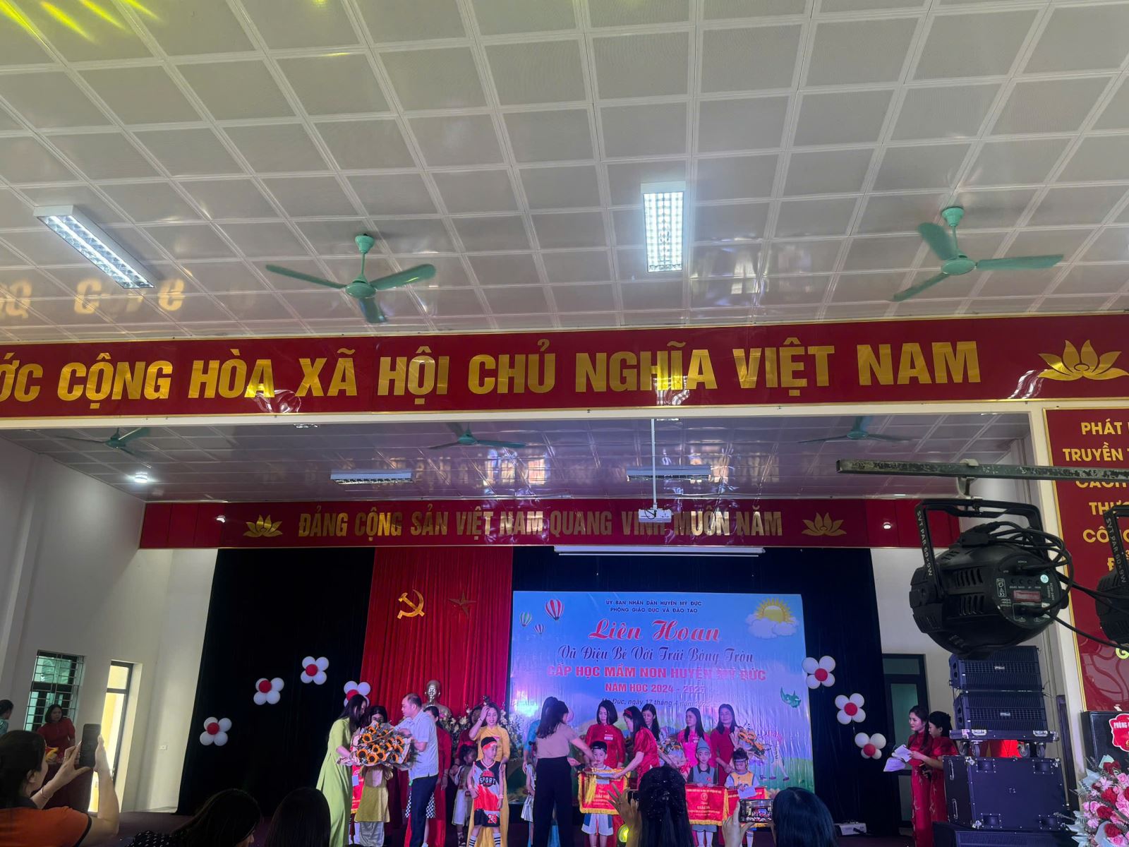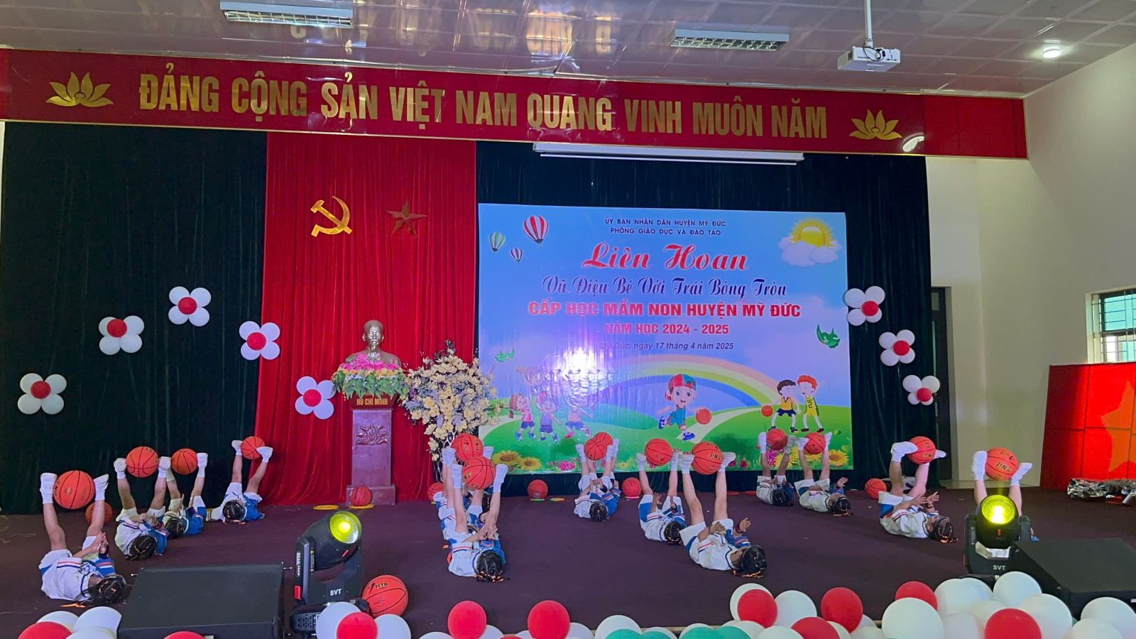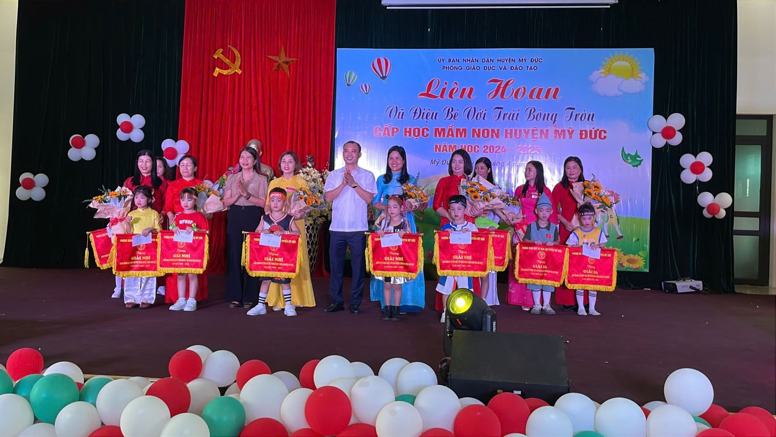 18/04/2025 A- A A+ | HỘI THI VŨ ĐIỆU BÉ VỚI TRÁI BÓNG TRÒN CẤP HUYỆN MỸ ĐỨC NĂM HỌC 2024- 2025 Xem Chia s? Thực hiện kế hoạch nhiệm vụ năm học 2024-2025 của trường mầm non Hợp Tiến B. Để đẩy mạnh phong trào thi đua hai tốt, phong trào nuôi con khỏe dạy con ngoan và công tác chăm sóc giáo dục trẻ trong nhà trường. Hôm nay ngày 17/ 04/2025 Phòng GDĐT huyện Mỹ Đức long trọng tổ chức Hội thi " Bé với trái bòng tròn" cụm số 03 năm học 2024 - 2025 Tham gia hội thi lần này có Có 10 trường trong cụm dự thi. Các cháu tham gia thi ở hai nội dung thi: Phần chào hỏi - Bé khoẻ Hội thi "Bé với trái bòng tròn" nhằm đánh giá sự phát triển toàn diện của trẻ về thể chất, ngôn ngữ, nhận thức, tình cảm, thẩm mỹ, năng khiếu. Hội thi "Bé với trái bòng tròn" nhằm thực hiện có hiệu quả chương trình chăm sóc giáo dục trẻ mầm non. Thông qua hội thi, tuyên truyền kiến thức khoa học về nuôi dạy trẻ trong phụ huynh và các tổ chức xã hội tạo điều kiện tốt cho trẻ phát triển toàn diện về thể chất, trí tuệ, tình cảm. Mặt khác, hội thi " Bé với trái bòng tròn" cấp huyện còn nhằm phát hiện những tài năng, năng khiếu của trẻ, từ đó làm chuyển biến về phong trào xã hội hóa giáo dục, cũng như nhận thức của phụ huynh, nhân dân, cộng đồng để đưa chất lượng chăm sóc nuôi dưỡng giáo dục trẻ ngày càng cao đáp ứng với yêu cầu đổi mới giáo dục. Ở phần thi Phần thi Chào hỏi, các đội thi tự giới thiệu về đội mình: Tên trường, địa phương, thành viên…bằng các hình thức khác nhau, trong thời gian không quá 3 phút. Mỗi đội thi lựa chọn một hình thức giới thiệu khác nhau, song đều thể hiện được sự tự tin, mạnh dạn, sự thông minh, dí dỏm, đáng yêu…của các đội. Ảnh: Phần Chào hỏi ấn tượng của MN Hợp Tiến B Với phần thi Bé với trái bóng tròn”, mỗi đội thi biểu diễn 1 bài tập với bóng nhịp nhàng kết hợp với âm nhạc, lời ca tự chọn phù hợp chương trình GDMN. Khỏe khoắn, đặc sắc và ấn tượng là cảm nhận của tất cả khán giả khi được chứng kiến những màn đồng diễn tuyệt vời. Ảnh: các bé tham dự hội thi "Bé với trái bóng tròn" Kết quả qua hội thi “ Bé với trái bòng tròn” Cụm 3 Huyện Mỹ Đức Ban tổ chức đã tổng kết và trao 1 giải Nhất, 5 giải Nhì, 4 giải Ba. Trong đó Trường mầm non Hợp Tiến B. “Đạt giải Nhì” của cụm số 3 Ảnh: Trao giải Nhì hội thi bé với trái bóng tròn Hội thi là một trong những biện pháp tích cực đẩy mạnh phong trào thi đua "Dạy tốt, học tốt", nhằm nâng cao chất lượng giáo dục, đánh giá chất lượng công tác quản lý, chỉ đạo của nhà trường và hiệu quả giáo dục trẻ của giáo viên. Qua Hội thi, nhằm khơi dậy sự sáng tạo, lòng yêu trẻ, yêu nghề của tập thể đội ngũ giáo viên, đặc biệt là giáo viên trực tiếp đứng lớp, từ đó có sự điều chỉnh việc chăm sóc, nuôi dưỡng, giáo dục trẻ, phấn đấu hoàn thành tốt nhiệm vụ được giao Tập tin đính kèm Tải về