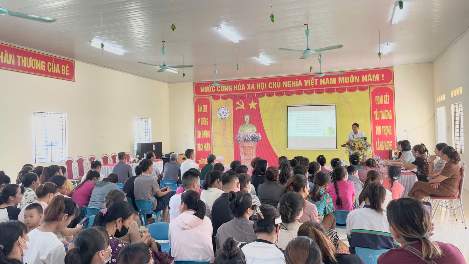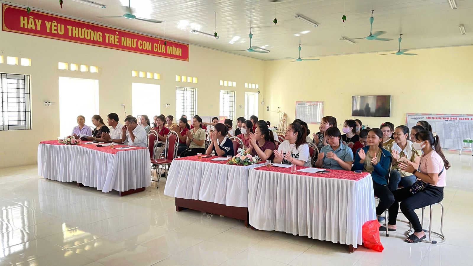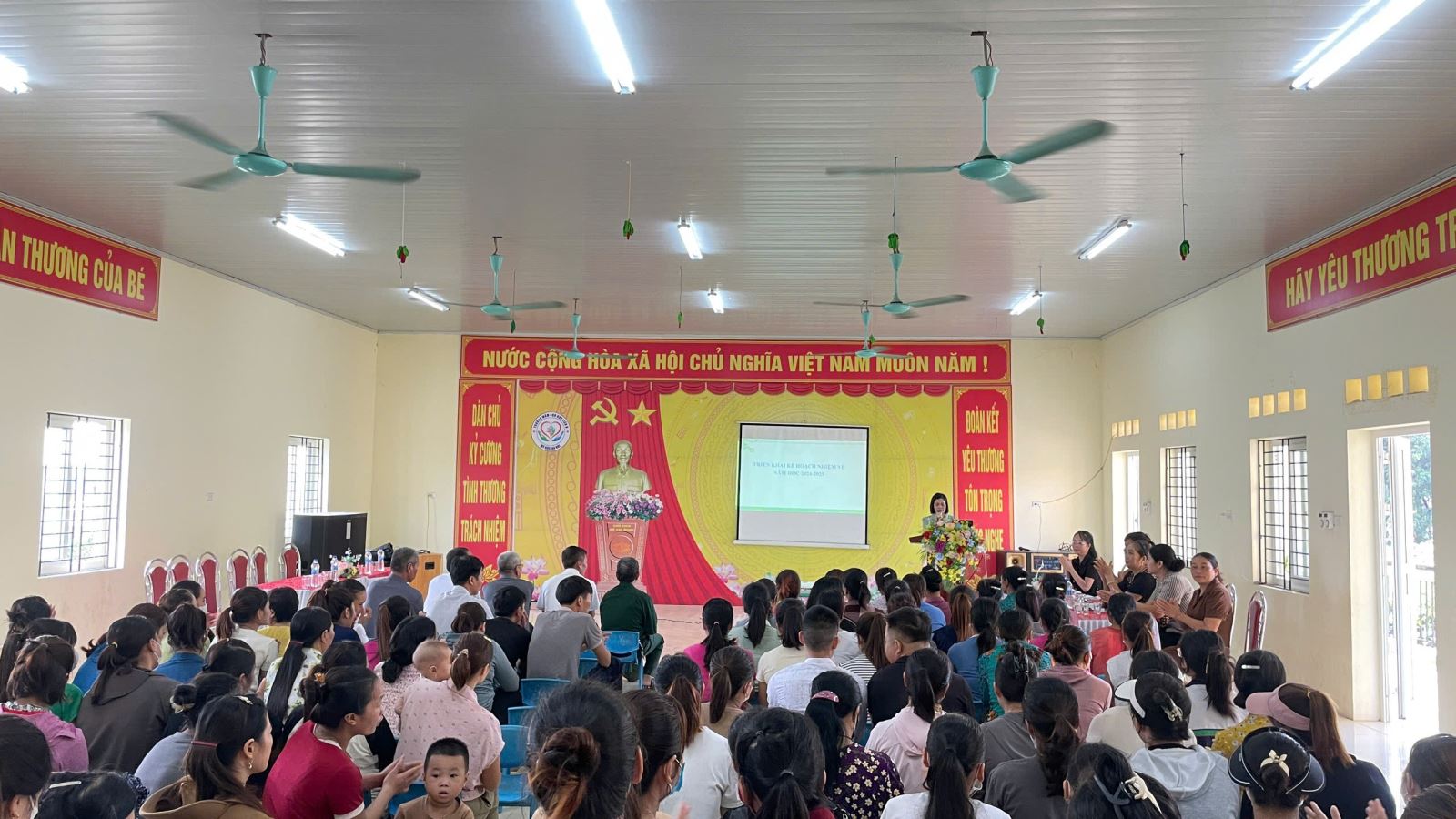 30/09/2024 A- A A+ | HỌP PHỤ HUYNH ĐẦU NĂM HỌC 2024 - 2025 Xem Chia s? Thực hiện kế hoạch nhiệm vụ năm học 2024-2025 của Trường MN Hợp Tiến B nhằm đảm bảo hiệu quả trong công tác phối hợp giữa nhà trường và gia đình. Để nâng cao chất lượng chăm sóc giáo dục trẻ, đồng thời nắm bắt được tâm tư nguyện vọng, mong muốn của các bậc phụ huynh. Sáng ngày 29/09/2024 Trường Mầm non Hợp Tiến B tổ chức họp phụ huynh đầu năm học mới 2024-2025. * Về dự với buổi họp có: * Về Lãnh đạo: - Ông Trần Văn Hừng - Phó chủ tịch UBND Xã Hợp Tiến * Về phía nhà trường: - Toàn thể CB,GV,NV Trong nhà trường * Về Phía Phụ Huynh: -Có toàn thể các bậc phụ huynh học sinh toàn trường Trong buổi họp các bậc phụ huynh được nghe Cô Đặng Thị Điểm- Hiệu trưởng nhà trường báo cáo công tác hoạt động hè của nhà trường và thông qua kế hoạch nhiệm vụ năm học mới 2024-2025. Hình ảnh: Cô Đặng Thị Điểm - Hiệu Trưởng nhà trường lên triển khai một số nhiệm vụ trọng tâm trong năm học 2024 - 2025 Hình ảnh Ông Trần Văn Hừng- Phó chủ tich UBND xã Hợp Tiến lên phát biểu chỉ đạo hội nghị Qua buổi họp, nhà trường đã nhận được những lời chia sẻ, cảm ơn và trên hết là sự tin tưởng của các bậc phụ huynh. Cũng sau buổi họp ấy, phụ huynh thấu hiểu con mình hơn, hiểu mình cần làm gì để đồng hành cùng con trên chặng đường sắp tới. Cũng từ đó mối quan hệ, sự phối hợp giữa gia đình và nhà trường, giữa thầy cô và phụ huynh đã thêm nhiều ý nghĩa, luôn song song, đồng hành nhưng lại cùng nhìn về một hướng: tất cả vì các con, vì học trò và tương lai. Hình ảnh: Phụ huynh lên phát biểu chia sẻ Sau khi nghe cô hiệu trưởng thông qua kế hoạch năm học mới và các khoản đóng góp theo quy định 100% các bậc phụ huynh có mặt nhất trí và sẽ đồng hành cùng nhà trường để thực hiện tốt các nhiệm vụ trong năm học mới Thay mặt nhà trường xin chân thành cảm ơn các bậc phụ huynh học sinh luôn quan tâm đồng hành và ủng hộ trong năm học 2024 – 2025 để nhà trường tiếp tục cố gắng nỗ lực nâng cao chất lượng giảng dạy, tạo điều kiện cho các con học sinh được học tập và rèn luyện trong một môi trường giáo dục toàn diện Tập tin đính kèm Tải về