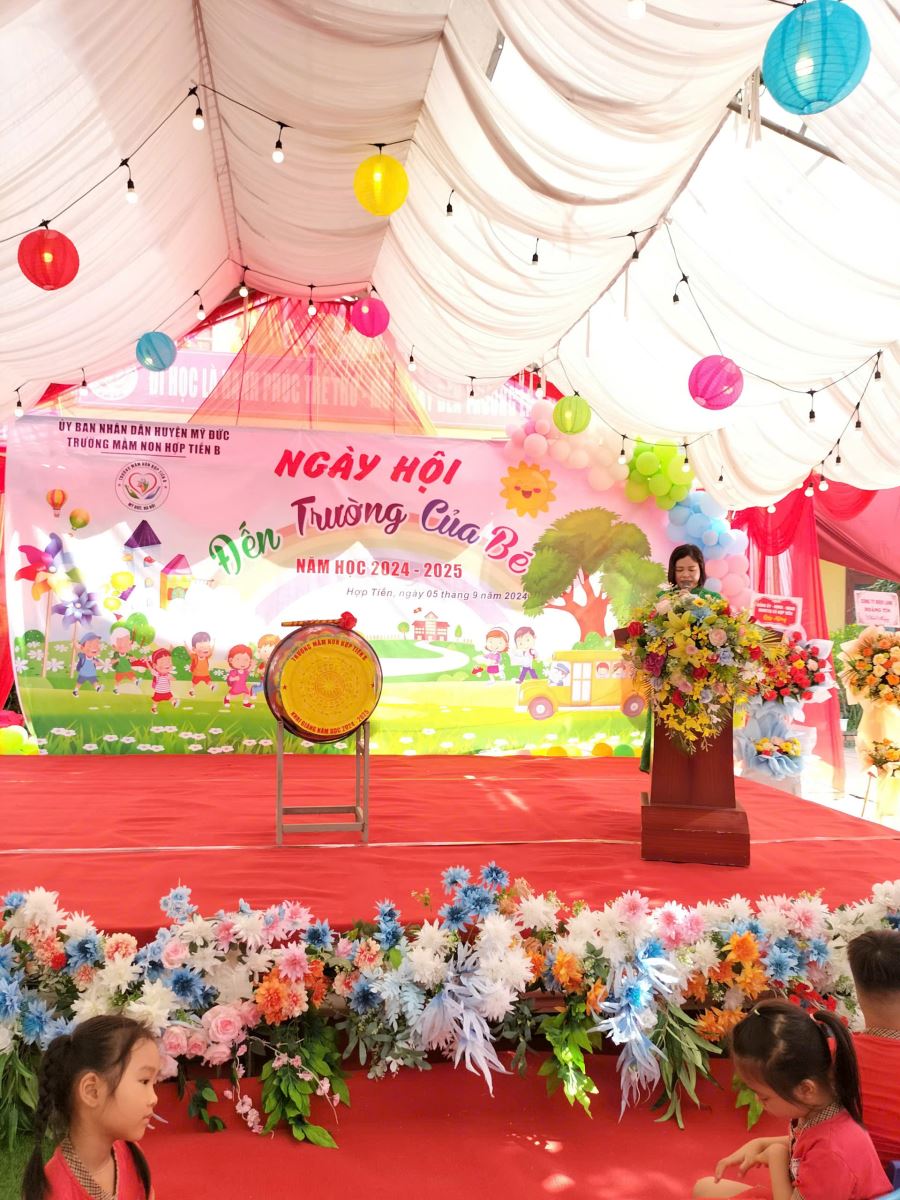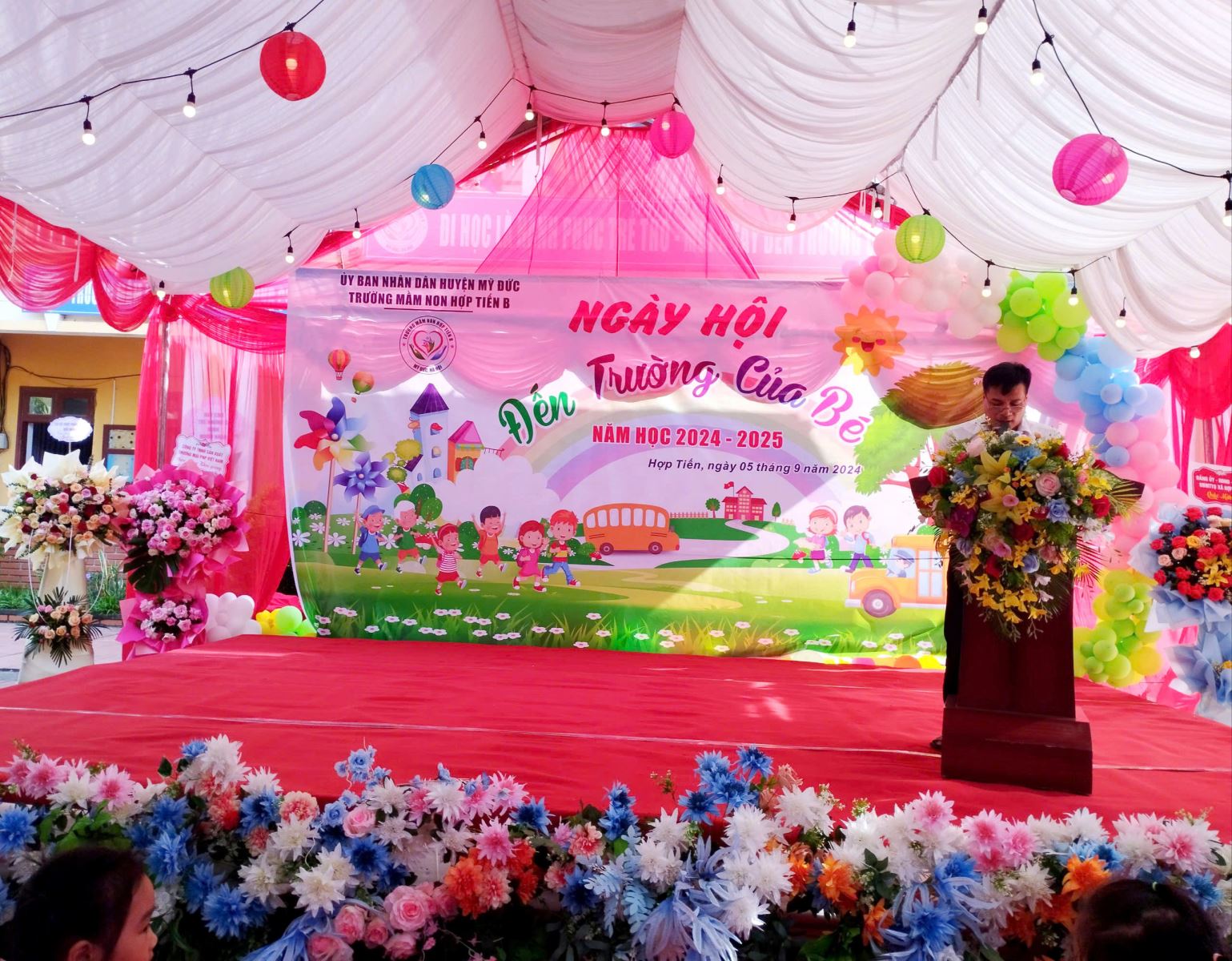 08/09/2024 A- A A+ | KHAI GIẢNG NĂM HỌC 2024 - 2025 Xem Chia s? Thực hiện công văn số 460/ PGD &ĐT huyện Mỹ Đức ngày 30/08/2024 về việc tổ chức Lễ khai giảng, triển khai một số hoạt động đầu năm học 2024 - 2025 Thực hiện kế hoạch số 111 /TrMNHTB ngày 30 tháng 8 năm 2024 về việc tổ chức Lễ khai giảng năm học 2024 – 2025 Để hoà chung trong không khí tưng bừng của những ngày mùa thu lịch sử, toàn đảng, toàn quân và toàn dân ta đang ra sức thi đua lập nhiều thành tích chào mừng kỷ niệm 79 năm Cách mạng tháng 8 và Quốc khánh 2/9, Hôm nay ngày mồng 5/9 cô trò Trường mầm non Hợp Tiến B long trong tổ chức” Ngày Hội Đến Trường Của Bé” năm học 2024- 2025 Đến dự buổi Lễ có sự hiện diện của các Đ/c lãnh đạo xã Hợp Tiến Ông Nguyễn Đình Chất – Phó CT UBND xã lên đọc thư chúc mừng của chủ tịch nước và tặng hoa chúc mừng nhà trường Bà Lê Thị Duyên- Nguyên PHT- Uỷ viên Ban thường trực hội cựu giáo chức có món quà dành tặng cho các cháu Bà Nguyễn Thị Hoà – Trưởng Ban đại diện hội Cha mẹ học sinh lên có bó hoa chúc mừng nhà trường Cùng toàn thể Cán bộ, giáo viên, nhân viên và phụ huynh học sinh. Và đặc biệt là sự có mặt của hơn 300 gương mặt hồn nhiên, xinh tươi của các bé học sinh toàn trường. Nhà trường vui mừng được lắng nghe những ý kiến chỉ đạo của đại diện lãnh đạo xã và được đón nhận các bó hoa tươi thắm của các vị đại biểu, đó như một sự động viên dành cho cô và trò trường Mầm non Hợp Tiến B sẽ cố gắng nỗ lực hơn nữa trong năm học tới. Tại buổi lễ đc Đặng Thị Điểm- Hiệu truởng nhà trường đã lên đọc diễn văn khai giảng năm học mới 2024 - 2025, gửi đến cho các cháu những lời chúc, lời chào đón hân hoan, gửi tới sự cảm ơn của lãnh đạo cấp trên, và những lời chúc, lời động viên tới toàn thể cán bộ GVNV trong nhà trường, hưa hẹn một năm học mới sẽ có nhiều kết quả tốt trong năm học 2024 - 2025. Thay mặt tập thể nhà trường xin chân thành cảm ơn các cấp lãnh đạo cùng toàn thể các bậc phụ huynh đã quan tâm động viên khích lệ đề cô trò Trường mầm Non Hợp Tiên B sẽ cố gắng phấn đấu trong năm học 2024 - 2025 gặt hãi được nhiều thành tích cao trong năm. Sau đây là những hình ảnh trong buổi lễ Ông Nguyễn Đình Chất - Phó chủ tịch UBND Xã Hợp Tiến có bó hoa tặng nhà trường Bà Nguyễn Thị Huyên - Bà Lê Thị Duyên - Uy hội cựu giáo chức có món quà dành tặng các cháu Bà Nguyễn Thị Hoà - Trưởng ban đại diện CMHS có bó hoa dành tặng cô trò nhà trường ĐC Đặng Thị Điểm - Hiêu Trưởng lên đọc diễn văn khai mạc và đánh trông khai trường Hình ảnh văn nghệ đến từ các bé MG5T Hình ảnh : Văn nghệ do các cô giáo thể hiện Tập tin đính kèm Tải về