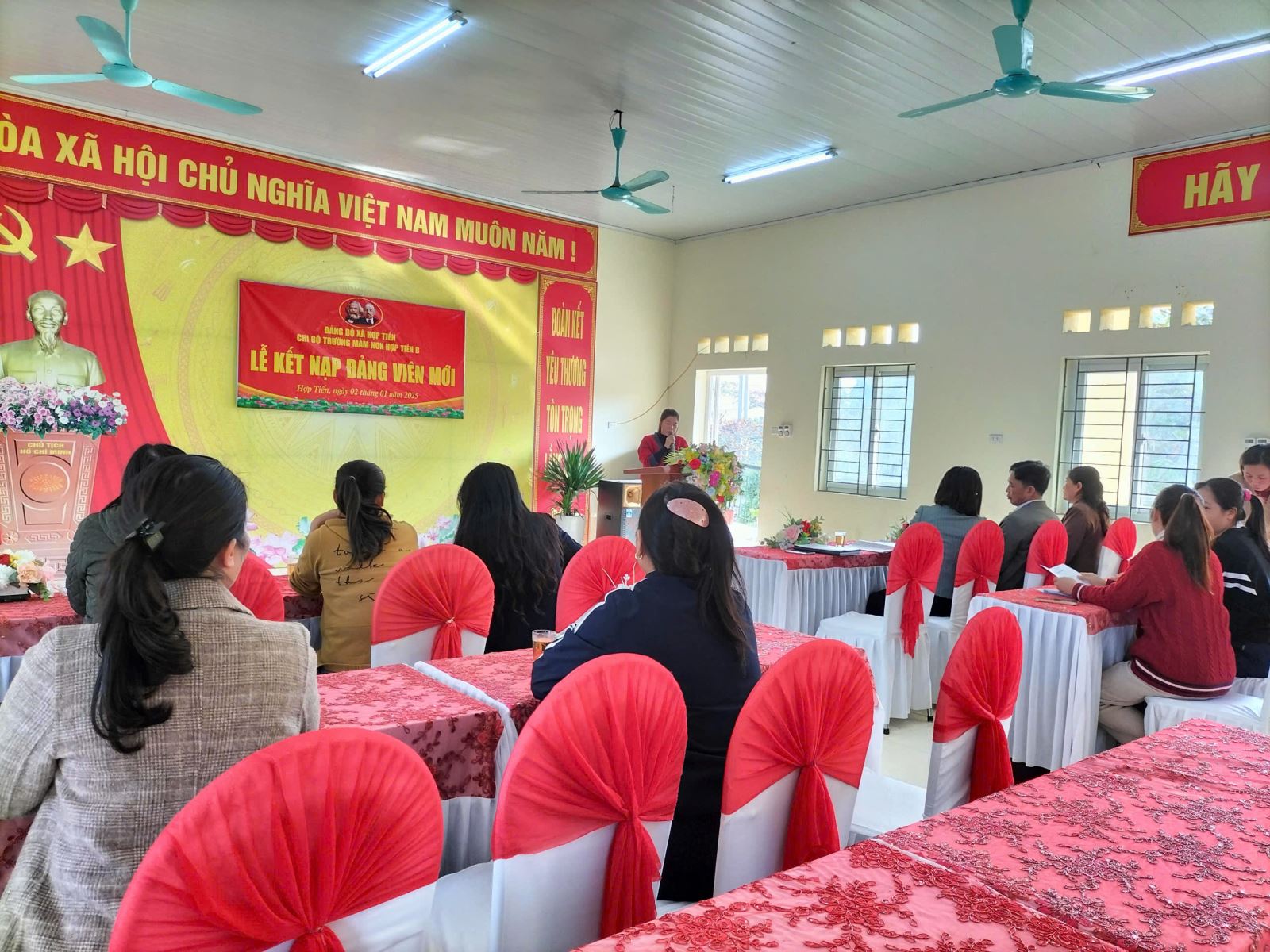 Buổi lễ kết nạp đảng viên đã diễn ra thành công tốt đẹp. Việc kết nạp đồng chí đảng viên góp phần thưc hiện tốt Nghị quyết Trung ương 4 (khóa XIII) của Chi bộ Trường Mầm Non Hợp Tiến B và Chi bộ Trường Mầm NoN Hợp Tiến B quyết tâm phấn đấu đạt danh hiệu Chi bộ “Hoàn thành xuất sắc nhiệm vụ” năm  2025.