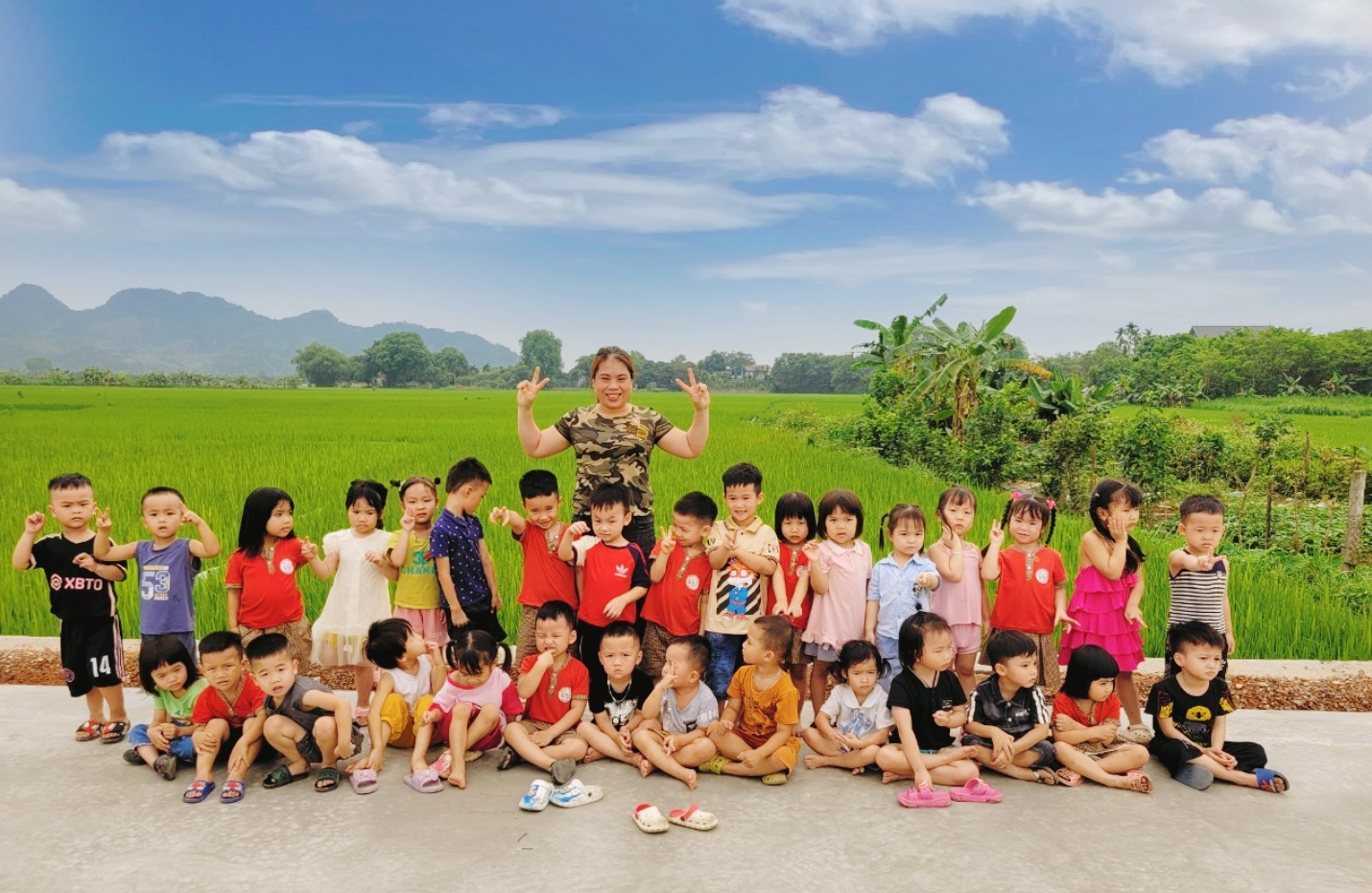 TRƯỜNG MẦM NON HỢP TIẾN B TỔ CHỨC CHO TRẺ  BUỔI THĂM QUAN DÃ NGOẠI CÁNH ĐỒNG LÚA VÀ TRƯƠNG TIỂU HOC