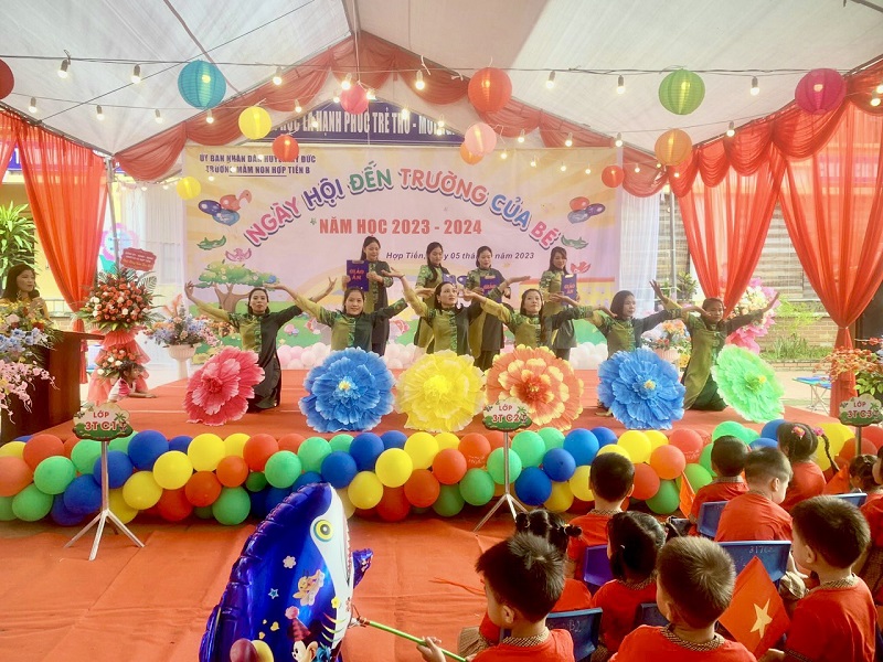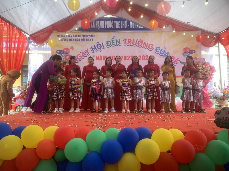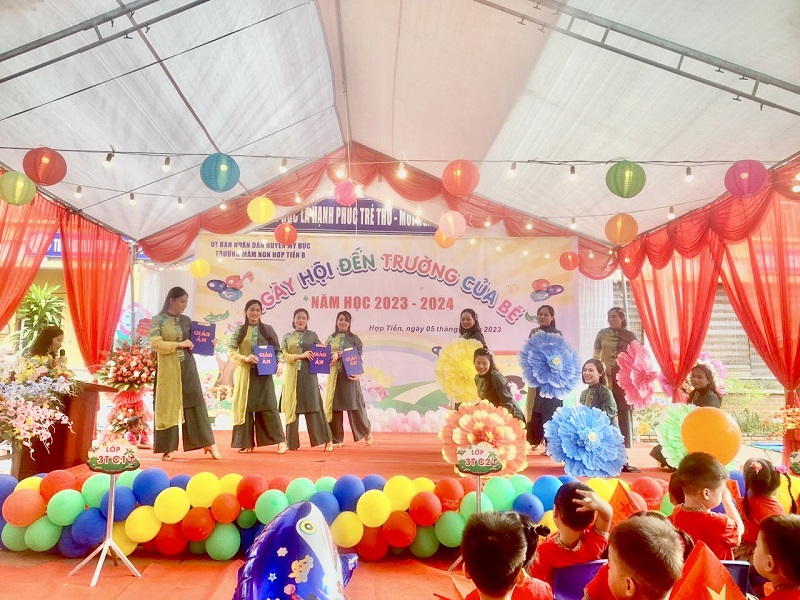 27/11/2023 A- A A+ | Trường mầm non Hợp Tiến B tổ chức Lễ khai giảng năm học 2023-2024 Xem Chia s? HOẠT ĐỘNG KHAI GIẢNG Hòa chung trong không khí vui tươi của cả nước Kỷ niệm 78 năm ngày cách mạng tháng Tám và Quốc khánh 2/9. Chào mừng ngày toàn dân đưa trẻ tới trường năm học 2023 - 2024. Tập thể CBGVNV và học sinh trường mầm non Hợp Tiến B rất vinh dự được đón các đồng chí lãnh đạo Ban thường vụ Đảng ủy, Hội đồng nhân dân, Uỷ ban nhân dân xã Hợp Tiến, đại diện hội cựu giáo chức xã, đại diện hội cha mẹ phụ huynh học sinh cùng các đồng chí cán bộ giáo viên nhân viên của nhà trường về dự ngày hội đến trường của bé hôm nay. Đây là nguồn động viên cổ vũ vô cùng lớn lao đối với nhà trường. Thay mặt Tập thể sư phạm nhà trường, tôi xin gửi tới các quý vị đại biểu, các bậc phụ huynh học sinh, các cô giáo lời chúc sức khỏe, gia đình hạnh phúc, chúc các cháu học sinh chăm ngoan học giỏi, mạnh khỏe. Chúc năm học mới thành công tốt đẹp Tập tin đính kèm Tải về