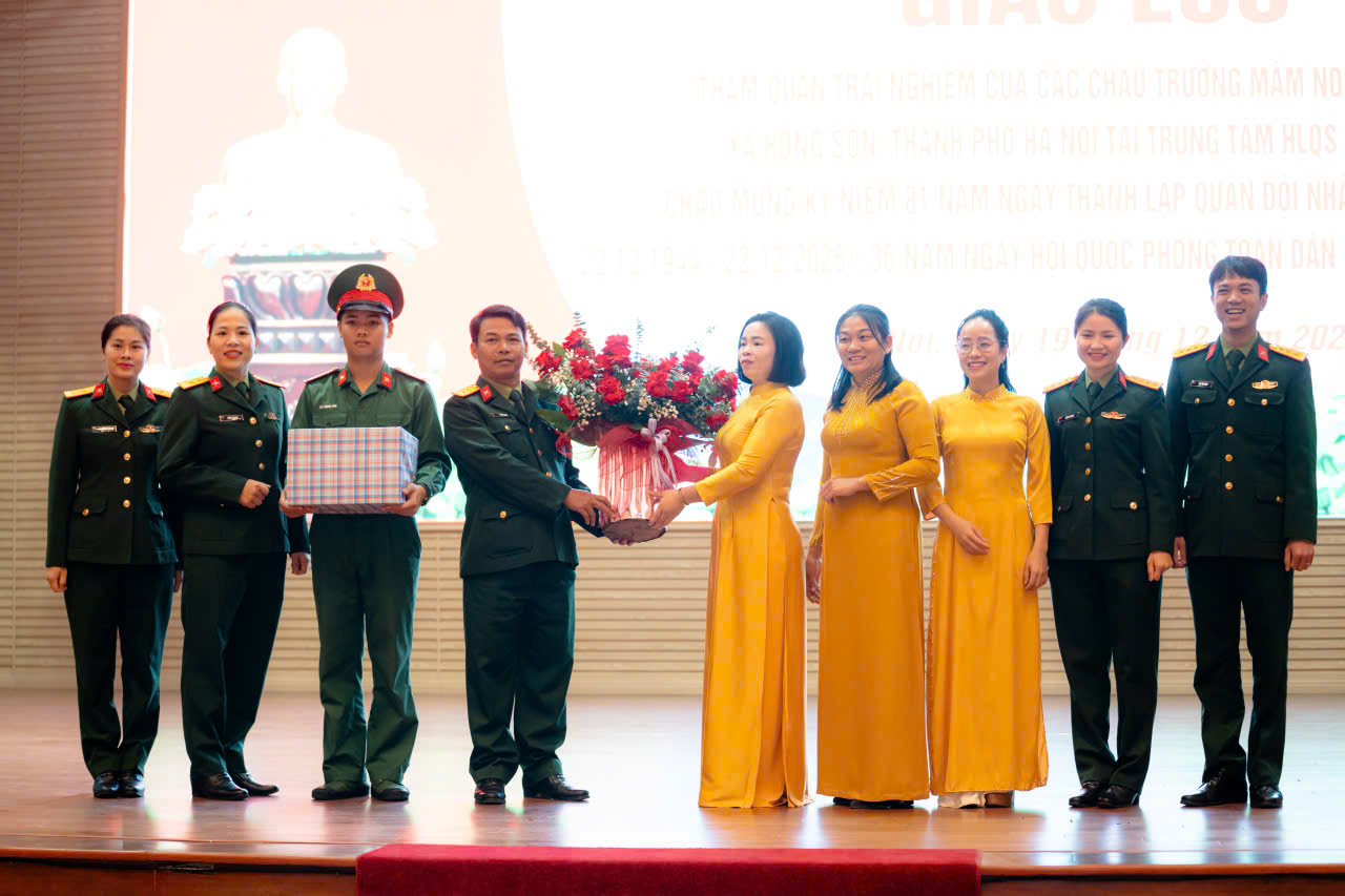 23/12/2025 A- A A+ | TRƯỜNG MN HỢP TIẾN B TỔ CHỨC HĐ TRẢI NGHIỆM THAM QUAN TTHL QUÂN SỰ QUỐC GIA 4 CHÀO MỪNG 81 NĂM NGÀY TLQĐND DÂN VIỆT NAM 22/12/1944 – 22/12/2025 Xem Chia s? Hòa chung trong không khí phấn khởi, tự hào của cả nước chào mừng 81 năm Ngày thành lập Quân đội nhân dân Việt Nam (22/12/1944 – 22/12/2025), Trường Mầm non Hợp Tiến B đã tổ chức cho các bé tham gia hoạt động trải nghiệm tham quan tại Trung tâm Huấn luyện Quân sự Quốc gia 4. Hình ảnh: Giao lưu văn nghệ của cô trò trường mầm non Hợp Tiến B Hình ảnh: Nhà trường có bố hoa dành tặng các chú bộ đội Hình ảnh các chú bộ bộ đội tặng quà cho các cháu Hình ảnh Các chú bộ đội tập luyện thể dục buổi sáng Đây là hoạt động trải nghiệm có ý nghĩa giáo dục sâu sắc, nhằm giúp trẻ được làm quen, tìm hiểu về hình ảnh người chiến sĩ Quân đội nhân dân Việt Nam, qua đó bồi dưỡng cho trẻ tình yêu quê hương, đất nước, lòng biết ơn và sự kính trọng đối với các chú bộ đội – những người luôn ngày đêm rèn luyện, sẵn sàng bảo vệ Tổ quốc, giữ gìn cuộc sống bình yên cho nhân dân. Hình ảnh các con đến thăm thao trường của các chú bộ đội Trong chuyến tham quan, các bé được trực tiếp quan sát khu doanh trại, tìm hiểu về môi trường sinh hoạt, huấn luyện của các chú bộ đội; được nghe giới thiệu về trang phục, tác phong, kỷ luật cũng như những hoạt động rèn luyện hàng ngày trong quân đội. Những nội dung trải nghiệm được tổ chức phù hợp với lứa tuổi mầm non, tạo cho trẻ sự hứng thú, tò mò và niềm vui khi tham gia. Hình ảnh: các con đến thăm nơi nghỉ của các chú bộ đội Trong chuyến tham quan tại Trung tâm Huấn luyện Quân sự Quốc gia 4, các bé được quan sát hình ảnh các chú bộ đội gấp chăn màn vuông vắn, gọn gàng. Qua đó, trẻ hiểu thêm về tính kỷ luật, nề nếp sinh hoạt và tác phong nghiêm túc của người lính, góp phần giáo dục trẻ ý thức ngăn nắp, gọn gàng ngay từ nhỏ. Hình ảnh các chú bộ đội gấp chăn màm Đặc biệt, khi đến doanh trại, các con còn được trải nghiệm ăn cơm nắm muối vừng – bữa ăn giản dị, đậm chất người lính. Qua hoạt động này, trẻ hiểu thêm về tinh thần giản dị, tiết kiệm, vượt khó của các chú bộ đội, từ đó hình thành thái độ trân trọng lao động, biết quý trọng bữa ăn và thêm yêu mến hình ảnh “Bộ đội Cụ Hồ”. Hình ảnh: Các con được ăn cơm nắm muối vừn Thông qua hoạt động trải nghiệm thực tế, các bé không chỉ có thêm những hiểu biết ban đầu về quân đội mà còn trở nên mạnh dạn, tự tin hơn, biết lắng nghe, quan sát và hình thành những cảm xúc tích cực đối với quê hương, đất nước. Đây cũng là dịp để giáo dục trẻ biết yêu hòa bình, biết ơn những người đã và đang cống hiến vì sự bình yên của Tổ quốc. Thông qua hoạt động này, Trường Mầm non Hợp Tiến B mong muốn góp phần bồi dưỡng cho trẻ những giá trị giáo dục nền tảng ngay từ lứa tuổi mầm non, đồng thời tạo nên những kỷ niệm đẹp, đáng nhớ trong hành trình trưởng thành của các con. Nhà trường xin trân trọng cảm ơn sự quan tâm, tạo điều kiện của các cấp lãnh đạo, Trung tâm Huấn luyện Quân sự Quốc gia 4, cùng sự đồng hành, phối hợp của các bậc phụ huynh đã góp phần để hoạt động diễn ra an toàn, ý nghĩa và thành công tốt đẹp. Tập tin đính kèm Tải về